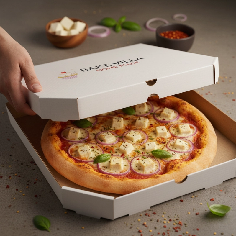 Loaded with juicy paneer cubes, sliced onions, and bubbling cheese, this pizza offers a satisfying bite packed with Indian flavor and cheesy goodness.