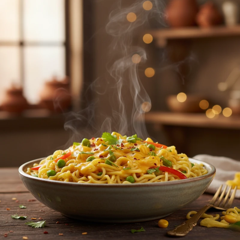 Veg. Cheese Maggi brings together the best of both worlds – the goodness of fresh vegetables and the creamy indulgence of melted cheese. Cooked with Maggi’s signature masala, this dish is enhanced with colorful veggies like carrots, peas, and capsicum, then topped with a generous amount of cheese. The result is a rich, satisfying bowl that’s full of flavor, texture, and comfort. Every bite offers a cheesy melt combined with the crunch of vegetables and spicy masala noodles. It’s a hearty option for those who crave a filling, indulgent, and wholesome snack or quick meal. Served hot and fresh, it’s a guaranteed crowd-pleaser for both kids and adults.